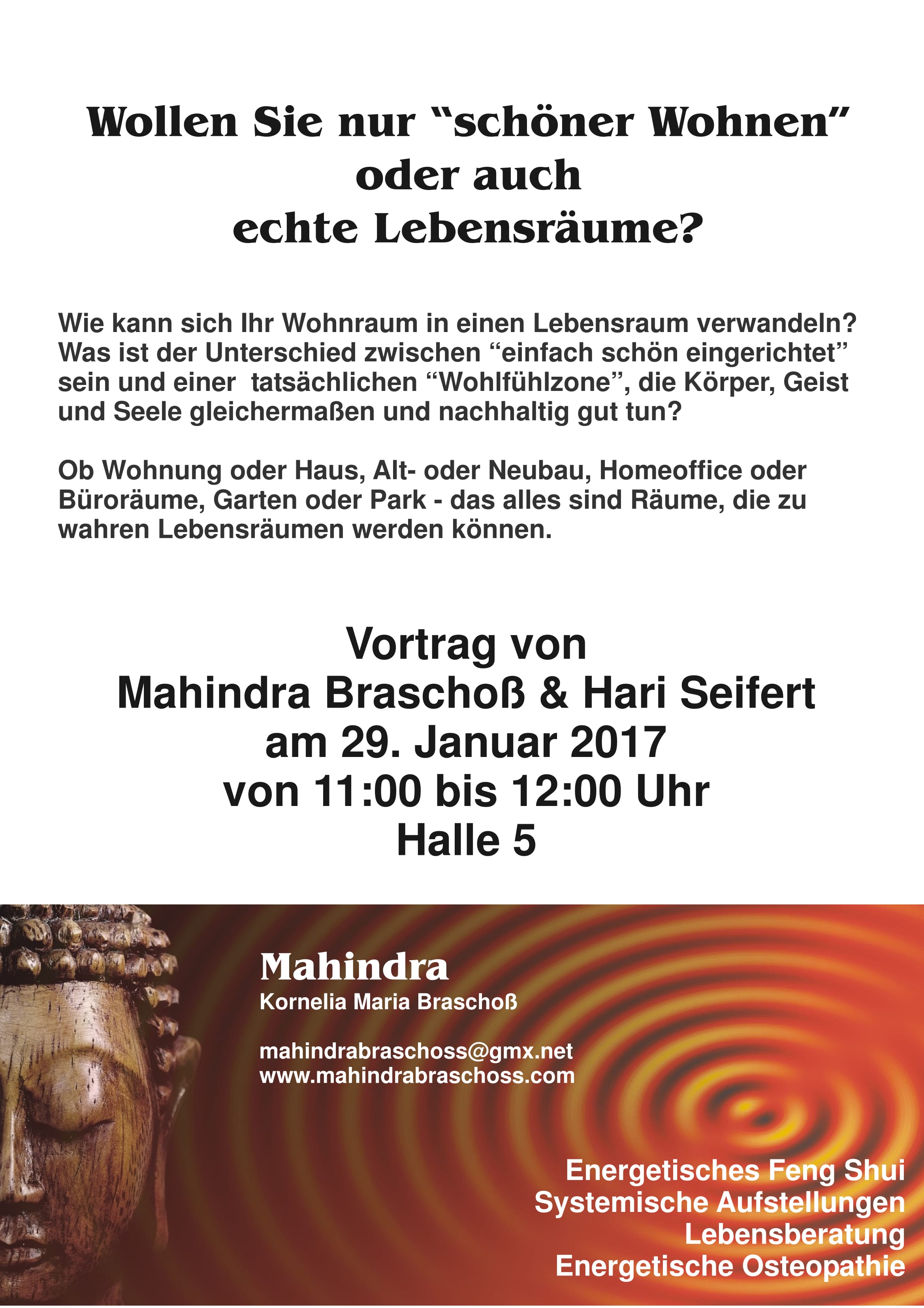 Anmeldung erbeten unter Tel.: 0221 89 76 08 oder per Mail: mahindrabraschoss@gmx.net