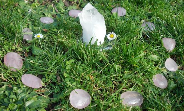 Ein Christuslicht Kraftplatz, von Sofie mit 12 ausgewählten Rosenquarzen angelegt, lädt die Christusenergie in unser Leben ein. Die Schwingung der Kristalle ist purer Balsam für die Seele.